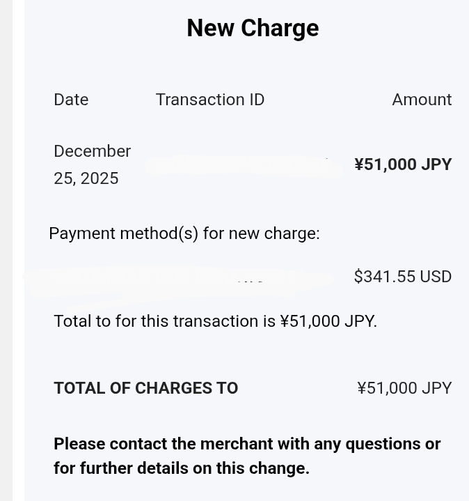Then it gets weirder! The amount charged was increased to 51k yen.