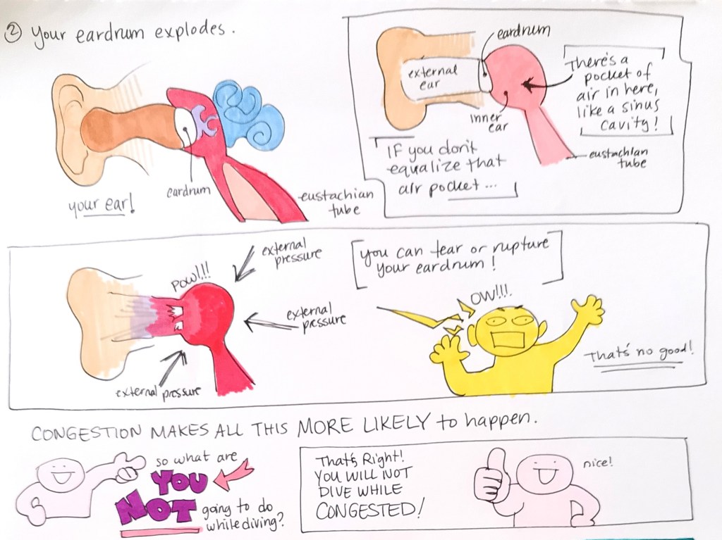 Don’t dive sick! It sucks to lose your deposit, and its a pain to change your plans, but in the end it’s worth it not to suffer through a major injury that could stop you from diving forever.