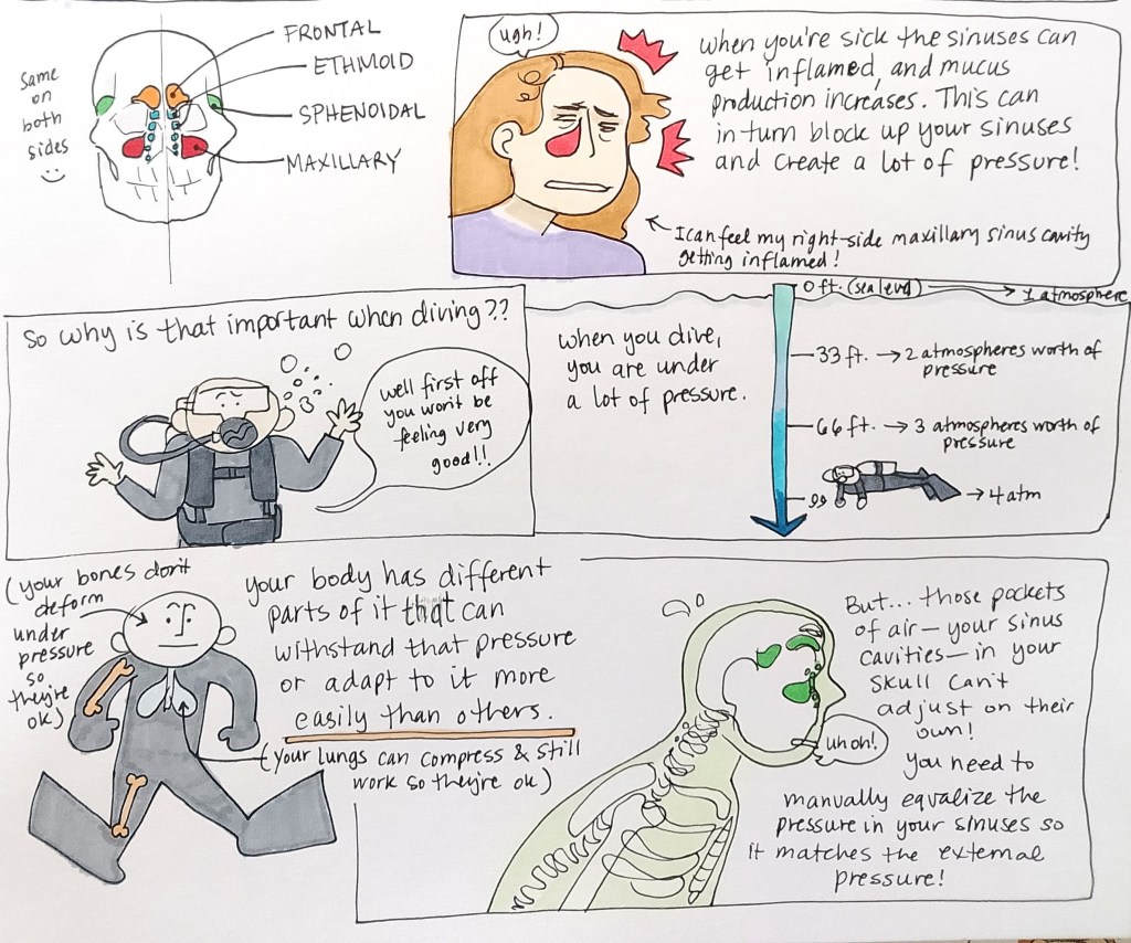 I’m sick! I think it’s a head cold that could turn into a sinus infection if I’m not careful. Unfortunately, this means I can’t dive while I’m ill.
